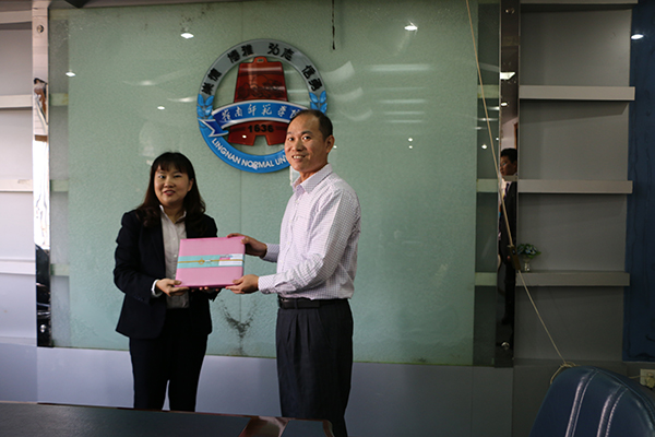 双方在介绍双方大学的情况后,展开了合作洽谈。双方重点讨论了我校与泰国兰实大学开展教育合作、开展东南亚文化研究的合作。双方就在学生交流、师生往来方面发表想法及意见。得知我校代表团将于12月访问泰国高校,该校代表热情邀请我校代表团在泰国访问期间能顺访该校,邓逢光处长愉快地接受了邀请,表示我校将继续与该校进行沟通,争取在我校代表团访问该校期间能与该校签订合作协议。会后,邓逢光处长与kanjanita suchao-in女士互赠了纪念品。