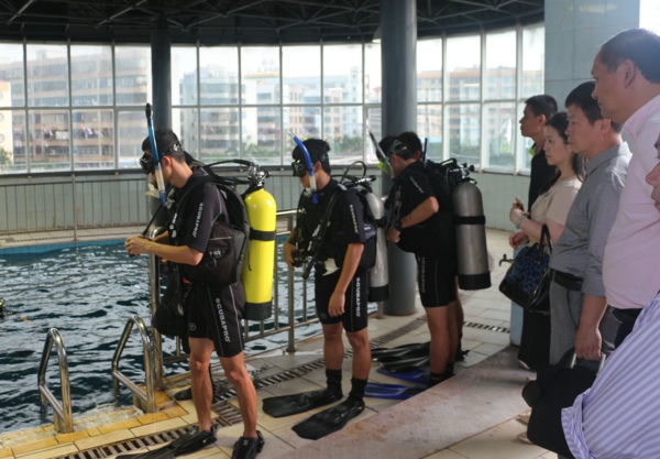 黄钢副院长一行还走进课堂,观摩了学生潜水课程的授课情况。