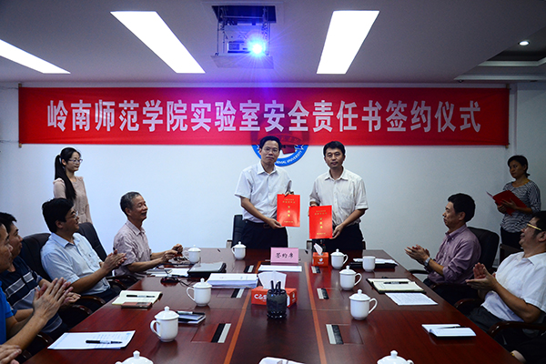 罗海鸥院长在会上分别与二级学院代表——物理、化学、信息三个学院的院长签订了实验室安全责任书。