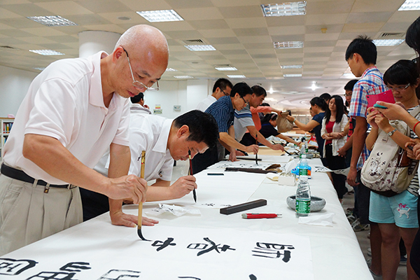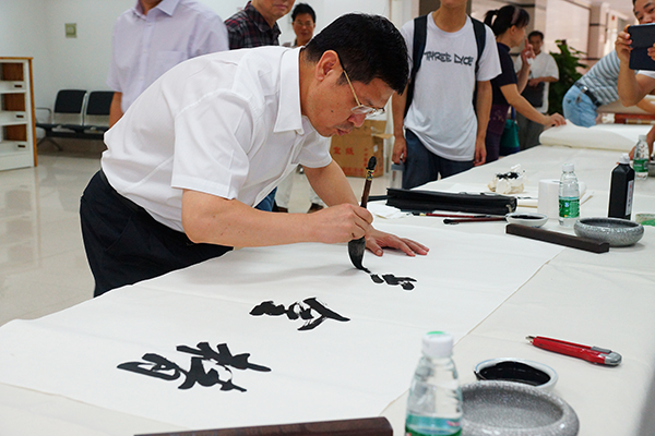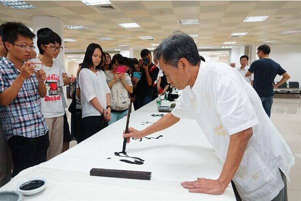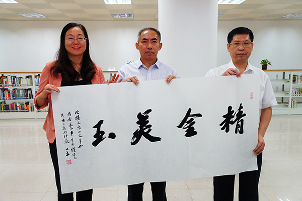 图书馆陈俊群馆长从书法家手中接过一幅幅作品,兴奋地说:“这次的活动对我校图书馆的文化品味提升有着重大意义,是新馆投入使用以来文化氛围建设的又一新的开端,文化氛围需要一个长久积累的过程,我们一直在致力于把图书馆打造成师生读者最喜爱光顾的知识殿堂和文化重地,让同学们在阅读书籍利用资源的同时,能够从书画作品中受到熏陶,从高雅舒适的文化氛围里得到美感和享受”。