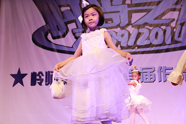 霓裳翩翩:每一个女生都有一个梦幻的婚纱公主梦,每一个男生都有一个帅气的礼服王子梦,学生设计师们让我们美梦成真。礼服婚纱的闪亮登场,给会场营造了浪漫的气息,也给这次服装秀画上了完美的句号。