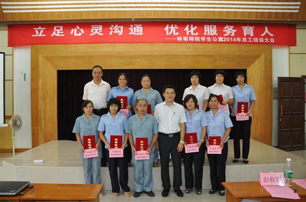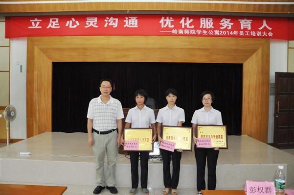 会上,陈永国副处长宣读了《关于表彰2013-2014学年度学生公寓先进集体和个人的决定》,对先进集体和个人进行了表彰。十佳员工代表刘小红老师和优质服务月优秀苑区代表邝彤冰老师分别在培训会上与大家分享工作经验。
