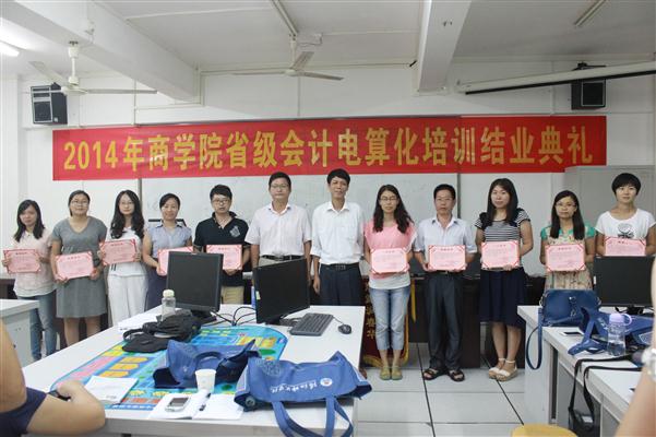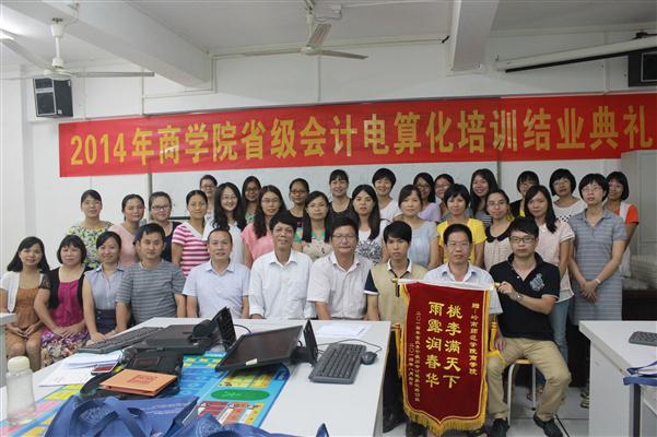 商学院举办的广东省2014年中职院校会计电算化专业骨干教师培训班,招生人数为34人,培训时间为15天,从7月16日到8月4日止。