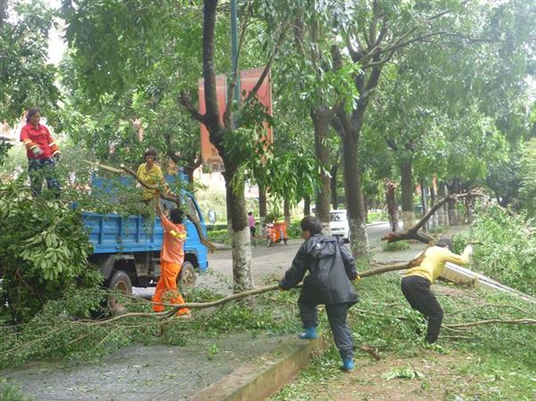 早在台风来临之前,学校罗海鸥院长、李江凌副院长已对放假期间的台风和强降雨天气预防等安全工作做了明确指示。后勤产业处根据学校领导指示,安排后勤各部门和实体进行了重点防范。包括台风来临前组织危房内居住人员安全转移;检查校园数百间教室的设备设施安全和门窗加固情况;对校内树木修剪疏枝通风、加土打桩、绑扎加固;组织水电部门排查水、电安全隐患和检查地下车库抽水机准备情况;做好餐饮保障,保证饮食供应的到位和安全、保持价格平稳;各部门和实体在重点岗位安排专人值班随时待命,等等,确保有效预防台风带来的灾害,最大限度减少灾后学校损失。