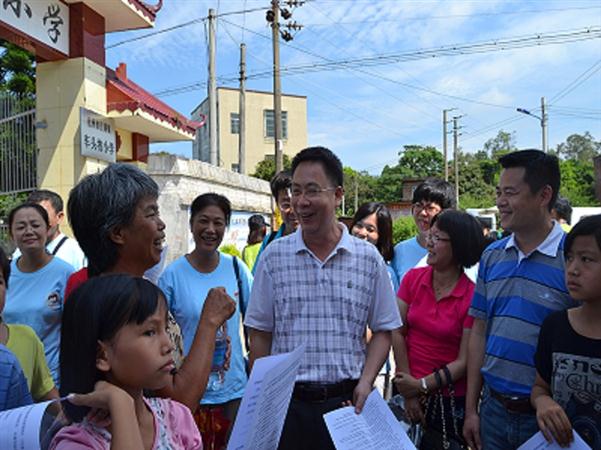 我校该次下乡队伍共201支,我队是学校授予的进行助学贷款政策宣传的8支队伍之一。领导的信任让我队更有信心完成宣传活动,上午8时许,我队便在校门前进行设点宣传。通过对路过的村民宣传外,我们还结合当地实际情况,挨家挨户和到农田里进行助学贷款的宣传,村民们反响很大,校门口几乎门庭若市,校相关领导对我队进行了视察,耐心聆听村民的疑问并一一解答。另外,彭权群书记等领导对外语院希望潮实践队的宣传活动给予了积极的评价并一起合影留念。