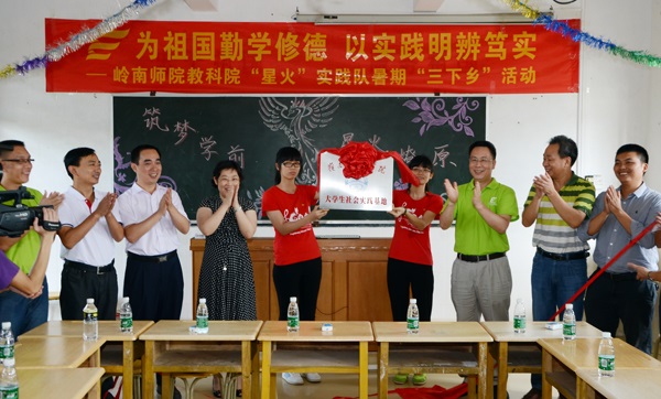 7月5日上午,团省委学校部武一婷部长在校党委彭权群副书记、校团委郭和才书记、团市委郑克芬副书记等领导老师陪同来到暑期“三下乡”实践基地湛江湖光镇蔡屋小学附属幼儿园,慰问了在当地开展“三下乡”的教科院“星火”实践队开展实践活动。