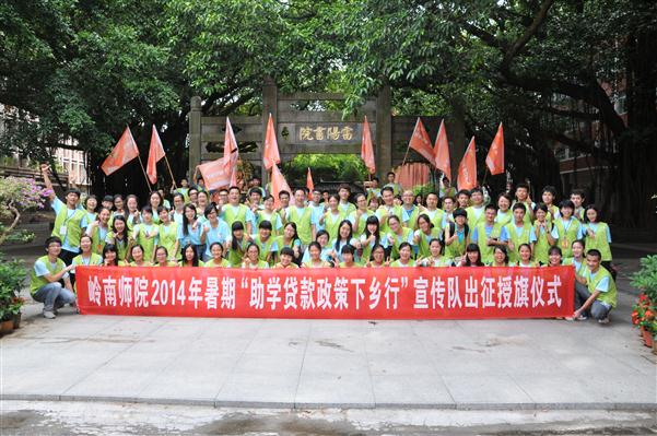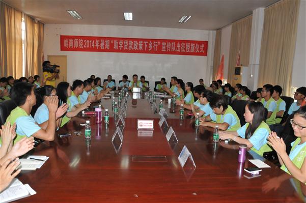 彭权群副书记在讲话中指出,“助学贷款政策下乡行”是省教育厅高度重视的一项活动,目的是进一步加大我省高校助学贷款的宣传力度,让学生资助政策走进千家万户。长期以来,我校助学贷款工作始终走在全省前列,今年在还贷任务高速增长的情况下,依然达到了还本率100%的目标;在广东省教育厅开展的全省高校国家助学贷款工作考核中,我校连续四年考评为“优秀”。作为入选广东省教育厅21所开展助学贷款政策下乡宣传活动的高校,我们深感责任重大。彭副书记希望所有参加宣传的同学珍惜锻炼机会,一方面全面深入了解和熟悉学生资助政策,熟悉国家助学贷款政策,不偏不倚地做好政策宣讲和答疑工作;要通过网络,有效利用“微博”、“微信”等沟通交流软件,加大政策宣传力度,让学生资助政策走进千家万户,造福贫困学子;另一方面要加强调研力度,调研我省经济困难家庭对助学贷款等学生资助政策的了解情况,形成有质量的调研报告,帮助学校和省教育厅进一步深化诚信、励志、感恩教育,促进学生成长成才。