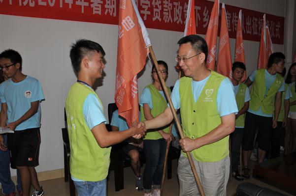 最后,彭副书记向14支队伍郑重授旗,殷切嘱咐队员们时刻谨记身份,把工作落实到位,服务于更多的贫困学生,并预祝各队伍圆满完成任务。