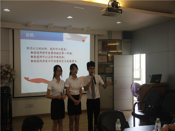 在比赛中,我校选手准备充分,应对自如,展现出了良好的精神风貌和竞技状态。在陈述环节中,我校商学院“战胜客”团队的作品《抢道网电子商务平台创业策划书》依据选题新颖、技术先进、前景广阔以及参赛选手黄春平、冼慧等人精彩而生动的阐述,获得了现场评委的一致认可;而在答辩环节中,我校选手黄端宇等面对评委的提问,能够做出充分的说明和准确的解释。他们思路清晰、逻辑严密以及语言简洁流畅,给现场评委留下了深刻的印象。