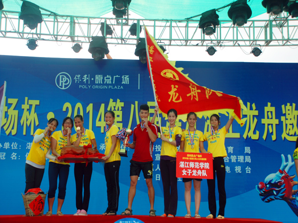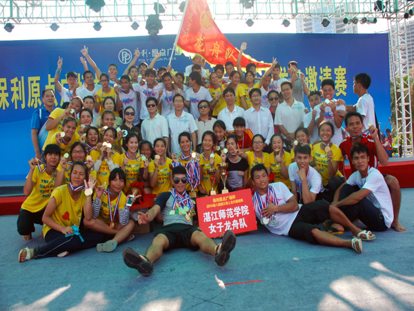 “很开心,从未有过的爽!”比赛结束后,一群皮肤黝黑的女汉子捧着奖杯在叽叽喳喳嚷着。她们,打败了一直以来的竞争对手,摘掉了“千年老二”的帽子。“能为学校争光就是我们最大的动力和荣誉!”队员们笑着说。我校女子龙舟队,由体科院的女生组成。19个新队员,7个老队员,这一届的老队员比以往少了很多,基本是一支新军。
