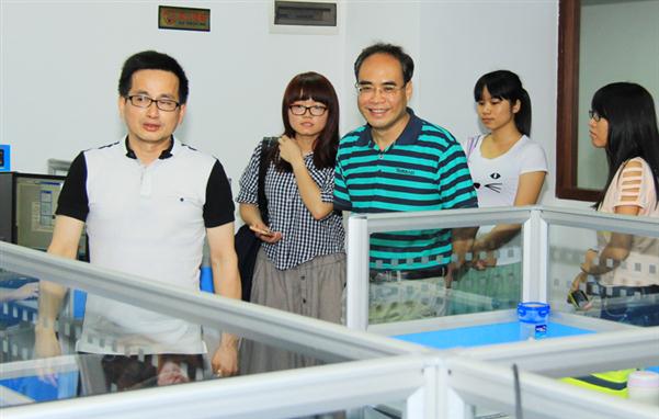 在湛江日报社,师生们参观了《湛江新闻网》办公区,观看了湛江日报社新媒体载体楼宇电视、感应灯箱、LCD(液晶)屏等现场演示,还观摩了新购置的航拍工具的现场航拍活动。湛江日报社网络传播中心主任、《湛江新闻网》总监、全搜索网络传播公司总经理漆卫国介绍了《湛江新闻网》的办网理念、发展历程、整体架构以及日常运营情况,还介绍了湛江日报社致力转型升级的重要举措和新媒体建设中的亮点。他提到,近年来,湛江日报社致力从传统党报向现代传媒转型,积极推进报网融合和新媒体平台建设,构架起了《湛江新闻网》、手机报、微博微信、楼宇电视、感应灯箱、LCD(液晶)屏等新媒体平台和载体。新成立的全搜索网络传播公司的粤西全媒体平台“城市联播”即将全面开播,助力湛江新媒体建设。