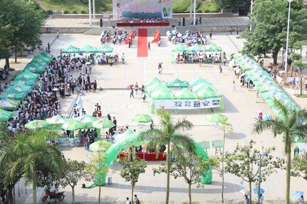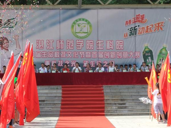 5月18日上午,湛师生命科学与技术学院第八届“生命科技文化节暨首届创新创意创业大赛”在雷阳广场隆重开幕。校党委刘海涛副书记、湛江市科学技术协会肖斌主席、湛江市科学技术协会科普部黄承礼部长、湛师校党委宣传部陈恕平部长、招生与就业处钟炳辉处长、学生工作部学生处正处级干部李爱群老师、通识教育中心林春主任、校党委组织部柯春明副部长、教务处冯天学副处长、生科院党委书记袁长春教授、生科院院长陈道海教授、生科院党委郑侯锦副书记、各专业系主任以及生科院全体老师和学生出席了开幕式。