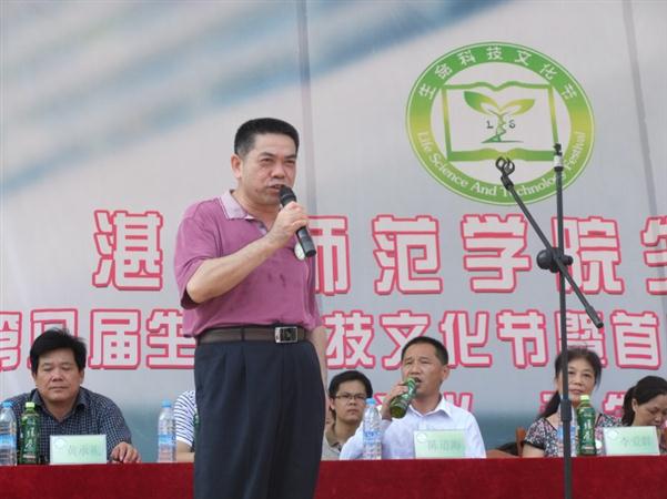 随后,湛江市科学技术协会肖斌主席代表湛江市科学技术协会致辞。肖主席在讲话中指出,高等院校拥有丰富的青年人才资源,是我国创新科研领域的接班人,因此他希望我校广大学生能培养创新的人格,树立远大的理想,锻炼自己沟通协调、团结合作的能力,为科技发展做出应有的贡献。最后,他指出,生命科技文化节各专业作品体现出大学生的青春与活力,尤其创新创意大赛的加入彰显出湛师生科学子开拓创新的精神,构建了学校实践创新的平台,提高了学生的创新能力。