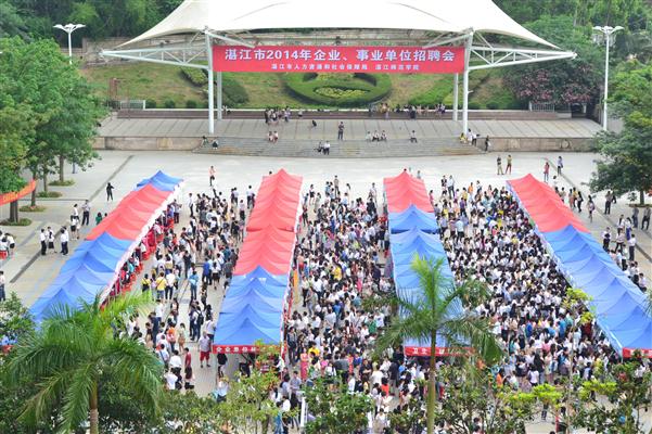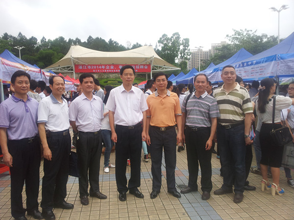 为贯彻落实教育部《关于做好2014年全国高等学校毕业生工作的通知》精神,拓宽毕业生就业渠道,挖掘更多优质岗位,进一步推进我校毕业生就业工作。4月26日,我校联合湛江市人力资源和社会保障局在我校雷阳广场举办了“湛江市2014年企事业单位大型专场招聘会”。湛江市人力资源和社会保障局李更盛局长,我校罗海鸥校长,刘海涛副书记,钟炳辉处长及各二级学院副书记和辅导员出席了招聘会。
