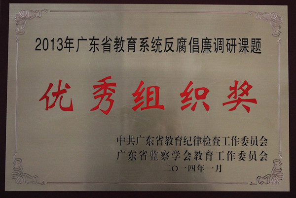 链接:2013年5月,广东省教育纪工委下发《关于做好2013年广东教育纪检监察调研工作的通知》,我校纪委监察处围绕反腐倡廉的中心工作认真思考,结合我校反腐倡廉工作实际,选定“高校勤政廉政电子监察系统应用”、“高校惩防腐败体系建设”和“大学生廉洁教育”三个主题,组织精干力量积极开展调查研究,最终形成《高校勤政廉政电子监察系统应用实践探索》、《中国历史经验对高校惩防腐败体系建设的启示》和《大学生廉洁教育成效调查及建议》三篇调研论文,按时上报省教育纪工委。经省教育纪工委组织专家评审,我校报送的三篇调研论文分获一、二等奖,我校也荣获“优秀组织奖”。