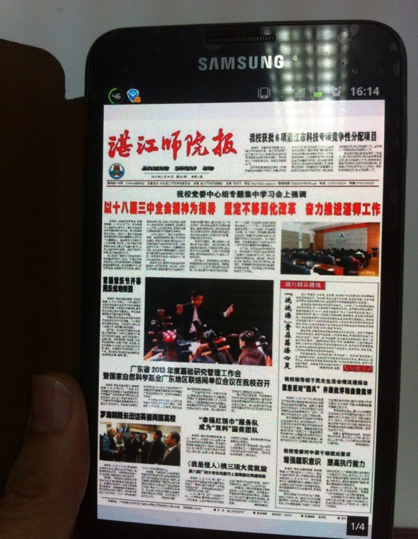 湛师新闻中心讯 近日,记者体验了在手机上阅读《湛江师院报》。这是《湛江师院报》电子报所在的《中国高校校报展示平台》已经开发了手机读报软件“华文读报”。
