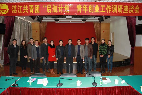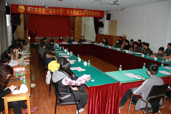 2月20日下午,湛江共青团“启航计划”青年创业工作调研座谈会在我校大学生活动中心420会议室举行。团省委城青部江凯涛副部长,团省委青企协王江贞秘书,团市委李志鹏书记、湛江师院团委郭和才书记,湛江师院团委李亚九副书记等领导以及湛江市青年企业家代表、我校学生代表参加了本次会议,会议由团市委王敦滟副书记主持。
