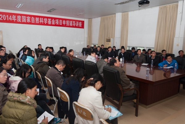 湛师新闻中心讯 12月19日下午,2014年度国家自然科学基金申报辅导讲座在我校紫荆楼三号会议室举行。讲座由邵乐喜副院长主持,主讲嘉宾为国家杰出青年基金获得者、华东理工大学朱为宏教授。学校党委黄钢副书记、各二级学院科研副院长、产业技术研究院的单位负责人、各单位的科研秘书、及全校有意申报国家自然科学基金项目的老师参加了本次讲座。