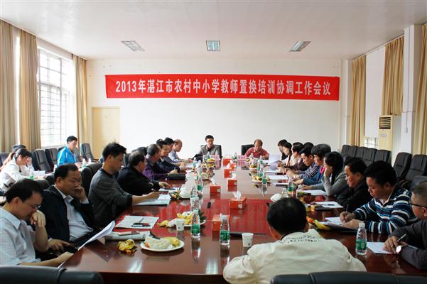 11月20日上午,2013年湛江市农村中小学教师置换培训协调工作会在我校三号会议举行。湛江市教育局副局长李尚武,湛江市教师继续教育指导中心主任李文舟、副主任全国慧,湛江市各县市区教育局分管教师继续教育工作副局长和人事股负责人,我校领导李江凌副院长,继续教育学院领导班子成员及相关科室负责人出席了会议。会议由李文舟主任主持。