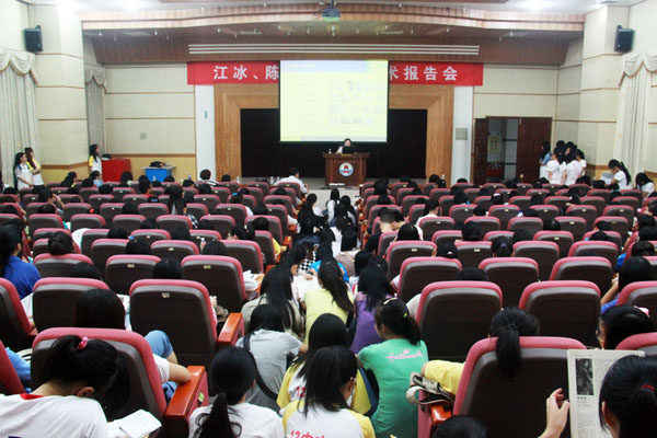 11月3日晚,广东技术师范学院教授,广东省写作学会副会长陈利群和广东财经大学人文与传播学院院长、教授江冰应邀来到学校图书馆学术报告厅,分别为人文院学子作题为《走出课堂写出精彩——谈谈在课外实践中提高写作能力》、《80后90后:网络新人类 网络新文化》两场学术报告会。讲座座无虚席、互动气氛热烈!