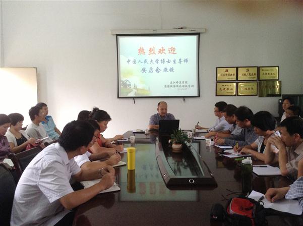10月17日下午,中国苏俄哲学研究会会长、中国人民大学博士生导师安启念教授在思政部会议室作了一场学术报告,李江凌副院长、思政部全体教师、法政学院部分教师参加了该学术活动。
