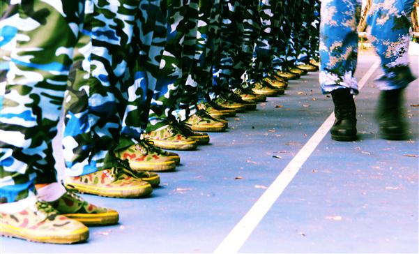 军训场上,同学们的每一寸步履都游走在汗水浸润的操练之中,所有不能忘却的劳累与汗水,都将在快门聚焦的瞬间中凝结,让他们的青春多了一抹坚毅的迷彩!