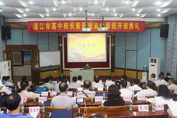 湛师新闻中心讯 10月14日上午,湛江市高中校长素质提高研修班开班典礼在我校榕楼培训课室举行。我校副院长李江凌教授,湛江市教育局局长林涛、继续教育指导中心主任李文舟,中国移动公司湛江分公司苏炜副总经理、赤坎分公司总经理林华扬,我校教科院党委书记赫云鹏、学校院办副主任刘坤章、继续教育学院副院长许占权、卢江、黄增等领导嘉宾出席了开班典礼。典礼由许占权副院长主持。