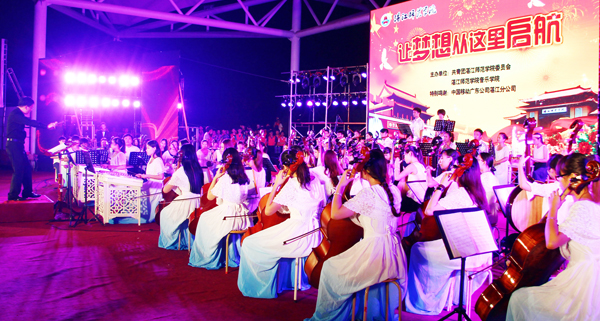 湛师新闻中心讯 燕岭弦歌欢度国庆、雷阳秋韵喜迎新生。9月27日晚上,我校庆祝中华人民共和国成立64周年暨迎新生文艺晚会在雷阳广场激情上演。“雷阳秋韵”、“青春风采”、“梦想启航”三个篇章的歌舞给广大师生带来一场精彩的视听盛宴。