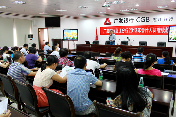 9月7日我校在广发银行湛江分行举行了2013年度会计人员继续教育培训开班典礼。参加开班典礼有我校继续教育学院副院长许占权教授、培训科黄树彬主任科员、商学院会计学专任教师黄电老师、广发银行湛江分行计划财务部刘澎总经理、陈铭副总经理等。广发银行湛江分行2013年度参加培训人数为180人。