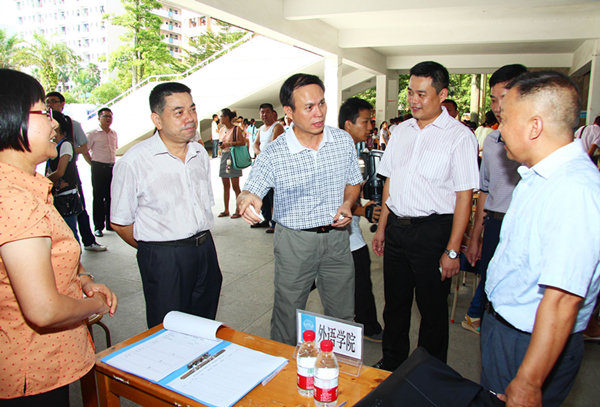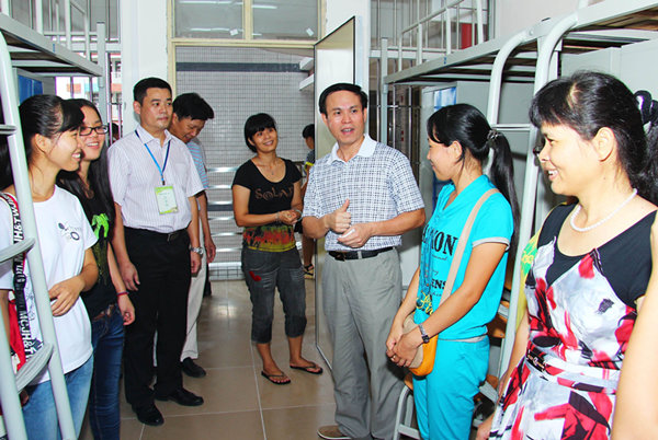 今年学校为了帮助贫困新生免除后顾之忧,迅速适应大学生活,安心学习,启动了“雷阳启航 情暖湛师” 2013级家庭贫困新生资助工程,从助学基金中调配10万元,分别设立了500元“生活补助金”、价值300元的“爱心礼包”、“晨光工程”早餐补助。迎新当天,学校领导梁英书记和刘海涛副书记在相关职能部门负责人的陪同下亲临“绿色通道”现场,听取了学生处李粤处长的工作汇报,慰问坚守岗位的工作人员,指导“绿色通道”工作的开展。随后,梁英书记和刘海涛副书记还在现场为一批贫困新生代表送上了生活补助金、“爱心礼包”和“晨光”早餐卡等。