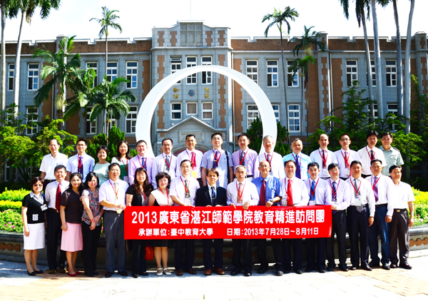 为了加强我校干部队伍建设,拓宽干部国际化办学视野,全面提升干部的综合素质和执行力,进一步加强与台湾高校的沟通和联系,我校组织了21名的职能部门和二级学院的主要负责人,由刘周堂副校长带队,于今年7月28至8月11日赴台湾台中教育大学进行了为期15天的学习培训。