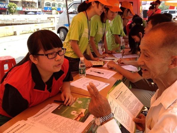 大型现场咨询宣传活动选在和平县的黄金地段、人流众多的六角亭,并作了精心的布置。身穿绿色宣传队服、头戴橙色帽子的宣传队队员,成为道路上的一条亮丽的风景线,他们主动、积极、热情、认真、负责地向广大群众讲解助学贷款政策,吸引了无数行人的驻足倾听。平和县当地的中学生志愿者在接受我校宣传队队员精简的培训之后积极加入到宣传行列中,他们的积极加入,有利于克服语言障碍,达到更好的宣传效果。前来咨询的人群,有白发苍苍的爷爷奶奶,有忧心忡忡的爸爸妈妈,也有正在读书的高中生等,即使烈日当空、酷暑难耐、汗流浃背,也不减他们了解助贷政策的渴望。助学贷款政策得到了广大群众的强烈反响和一致好评,其中有一位头发发白、年过六旬的老伯,在了解助学贷款政策后,由衷感叹道:“这就是中国共产党的政策,共产党的政策就是好!”另一位阿姨向宣传队员倾诉家庭经济困难后,不禁热泪盈眶,真切地希望能够通过助学贷款政策圆孩子的大学梦!