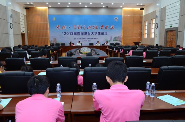 为增进海峡两岸学子情谊,共同促进海峡两岸大学生成长,7月1日下午,湛台两地高校学生再次会聚湛江师院国际会议厅,举行了以“实践·创新与能力发展”为主题的2013第四届湛台大学生论坛。