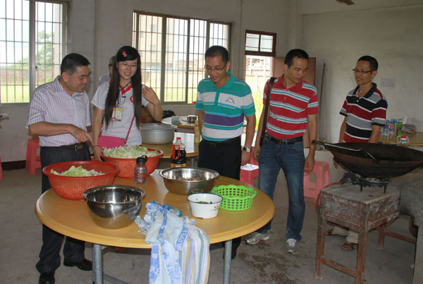 刘海涛副书记、团委郭和才书记一行随后具体察看社会实践队员的住宿环境,了解了食堂卫生情况。刘副书记在看到实践队队员做午饭的时候,更是亲自示范,为实践队员做了一道香味四溢的酱汁炒肉,实践队员们深受鼓舞,纷纷表示会饱含热情、全力投入、倾情实践!