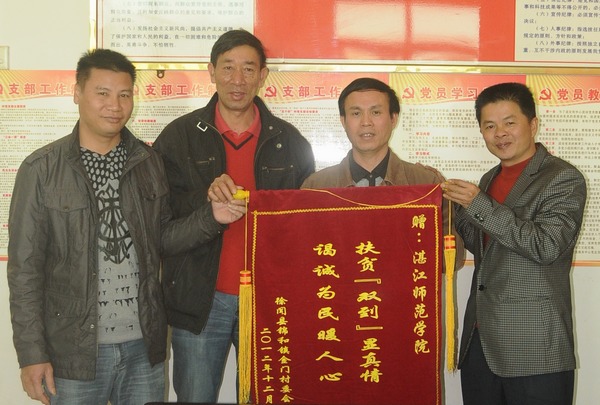 两锦旗的内容,凝聚了全体金门村民的心声。他们说,湛师人三年坚持不懈的热情帮助,使金门村面貌焕然一新。