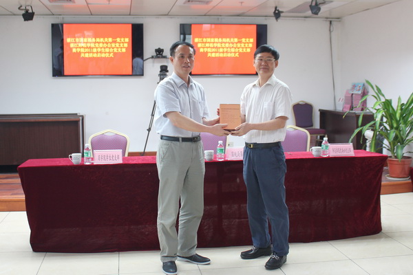 6月27日下午,机关党委办公室党支部与商学院2011级学生综合党支部、湛江市国税局机关第一党支部,在国税局会议室举行了隆重而简约的三方共建启动仪式。学校党委梁英书记、湛江市国税局杨剑局长、学校机关党委黄达海书记、商学院党委李干书记,以及共建三方的全体党员们参加了会议。湛江市国税局机关党委李志明书记主持会议。