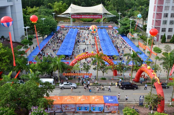 湛师新闻中心讯 23日上午, 2013年湛江市普通高校招生咨询会在我校雷阳广场举行。本次活动由湛江市招生考试委员会办公室主办,湛江师范学院协办。暨南大学、华南师范大学、汕头大学等130余所高校参展,20000余名考生及家长就关心的招生政策、录取分数及专业就业前景等问题到场进行了咨询。