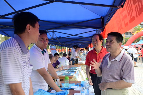 学校党委刘海涛副书记在招生与就业处钟炳辉处长陪同下亲临咨询会现场指导工作,并对我校各二级单位积极配合办好高考招生咨询会给予充分的肯定。随后,刘副书记还看望了兄弟院校招生咨询工作人员,并与他们进行亲切交流。