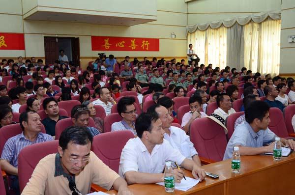 在讲堂上,陈部长围绕“道德讲堂”、“五城同创”和“市民实践”等三个关键词辨证地讲述了三者的内涵实质和内在联系,并结合“有道德、讲文明的新市民”的目标,重点从“五城同创”是什么、为什么、怎么做三个方面对“五城同创”进行了深入解读。陈部长强调,“五城同创”既是群众性道德实践活动的重要载体,也是群众性精神文明创建活动的标志性成果,同时应体现在每位市民的道德实践中。陈部长还以我校的开心广场志愿服务、爱我湛江历史知识服务队志愿服务和红嘴鸥生态习性研究与志愿服务等为例,指出“五城同创”作为市民群众的一种道德实践,最终要落实在民间,从点滴做起,从老百姓自身做起。