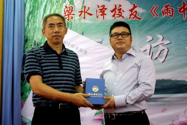 访谈会上,刘周堂副院长代表母校对广州校友会副会长兼秘书长刘培权、副会长梁水泽等广州校友返校开展交流访谈报告活动表示欢迎,向校友们关心支持母校的建设发展表示感谢,同时向校友们简要通报了母校当前的发展情况。刘副院长指出,校友和母校情感相依、休戚与共,校友们在社会上的出色表现,是反映母校办学质量、水平和影响的重要体现,也是回馈母校的最好“礼物”。梁水泽校友返校开展诗集发行访谈报告和义捐助教活动,体现出校友对母校发展的关心,对师弟师妹学习成长的关爱。刘副院长对梁水泽校友的创作追求、创业表现和奉献精神表示赞赏。