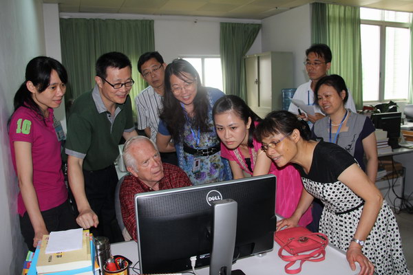 湛师新闻网5月23日讯 五月的盛夏,骄阳似火,凤凰花艳。21日下午,美国学者、作家Joel Montague先生在我校广州湾研究所所长景东升副教授、湛江市博物馆原副馆长叶彩萍女士的陪同下来到我校图书馆古籍粤西文献室参观调研广州湾专题文献,受到陈俊群馆长的热情接待。