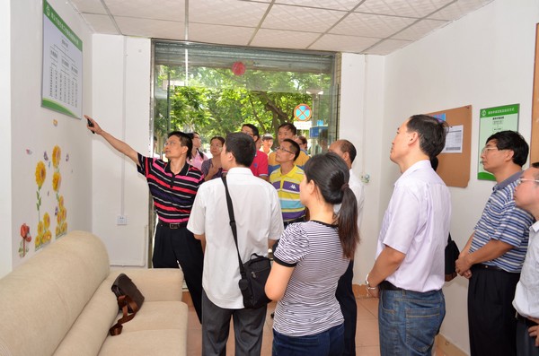 随后,湛江师院社工指导老师谭春光向莅临服务站的领导和群众介绍了工作站的基本情况,他从站内的硬件设施情况、服务对象、服务内容、工作流程等方面展开了详细地介绍。陈可养副局长在了解站内的基本情况后,鼓励大家要认真扎实的开展服务、做好社工事业,以专业的知识和技能为群众提供优质的服务,进一步促进社会和谐发展。