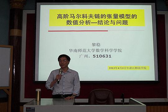 湛师新闻网4月7日讯 3日,华南师范大学计算数学研究所常务副所长黎稳教授,应数科院李晓培院长邀请,在榕楼学术报告厅作题为“高阶markov链的张量模型的数值分析——结论与问题”的学术报告。报告会由院长李晓培教授主持,副院长谷秀川教授、陈历敏教授,数学系主任刘小松教授、计算科学系吴勇旗博士,以及数科院部分老师出席了本次报告会。