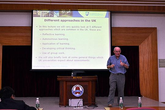 湛师新闻网4月3日讯 1日下午,由英国北安普顿大学教授dr.dave主讲的讲座“如何提高英语自学能力”在图书馆学术报告厅如期举行,学校国际交流与合作处的郑志军副处长及相关老师、外语院2012级学生聆听了讲座。