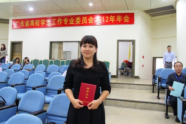 会上,朱孔军副书记和袁本新处长为大会致辞。美国俄克拉荷马州立大学副校长Lee Bird博士作了题目为《美国高校学生事务管理的核心任务及实现路径》的主题报告,广东外语外贸大学等4所高校的学生处长做了“高校学生事务管理的核心任务”的主题发言。中山大学等11所高校做了经验交流。大会还表彰了2012年“红棉奖”、先进个人及高校学生事务管理精品项目,我校辅导员覃静君老师获得了2012年广东省学生工作先进个人的荣誉称号,并上台受奖。