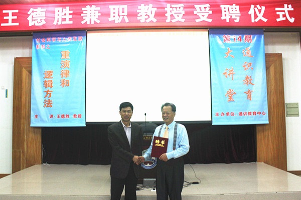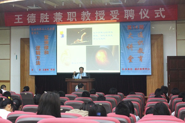 湛师新闻网3月17日讯 15日晚,我国知名的自然辩证法方法论专家、中国自然辩证法研究会副理事长、易学与科学学会副理事长、北京师范大学教授、博士生导师王德胜教授被聘为我校兼职教授,并在图书馆学术报告厅为同学们作了一场题为“重演律和逻辑方法”的学术讲座。讲座受到了广大师生的热烈欢迎,吸引众多师生前来参加。受聘仪式由通识教育中心林春主任主持。