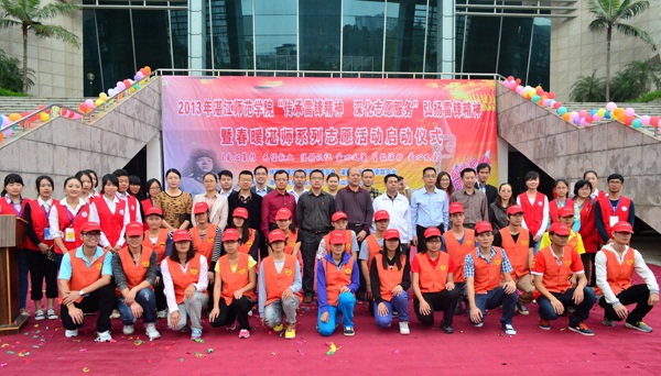 “以德养寿、以学养颜、以善正气、以动健体”。刘海涛副书记在启动仪式上用这四句话总结人生境界,激励全体青年学生们要德学兼备,胸怀善心,常行善举。同时,刘副书记寄语广大教职工与青年志愿者们,希望他们能坚持不懈地传承雷锋精神,做好志愿服务。最后,刘海涛副书记宣布2013年春暖湛师系列志愿活动仪式正式启动。