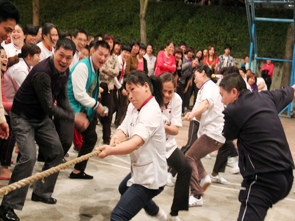 邱飞书记热情洋溢的为活动致辞,并对后勤系统的女同胞致以节日的问候。林剑副主席为女职工送出了祝福,并预祝本次活动圆满成功。随着李江凌副院长宣布拔河比赛开始,赛场气氛即刻高涨。本次活动共有八个代表队参赛。在喜庆、紧张、热烈的气氛里,比赛进程紧凑而有序,热烈而高效,各参赛代表和拉拉队员们全力投入。赛场上“团结、拼搏、和谐、包容”的氛围,体现了后勤人团结协作的精神,增进了交流,提高了后勤人的集体荣誉感,增强了后勤人的凝聚力,让我们看到了后勤发展的活力。