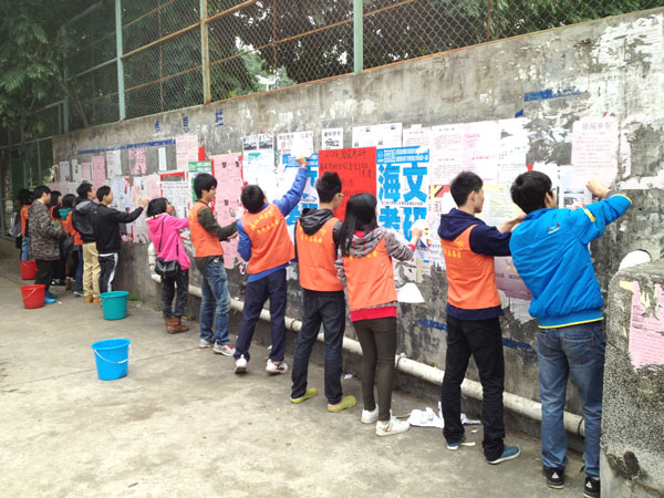 本次创卫活动在整个校园内展开,重点清洁对象是鸿园,尚志苑草坪,钟楼以及四栋教学楼等区域,主要针对该区域中的垃圾以及在宣传栏中乱粘乱贴的小广告进行清理。这些随手丢弃的垃圾和乱张贴的小广告严重影响到校园的美观和整洁,也影响到了学生们的日常学习和生活,需要志愿者们携起手来,共同清除垃圾,创建美丽校园。