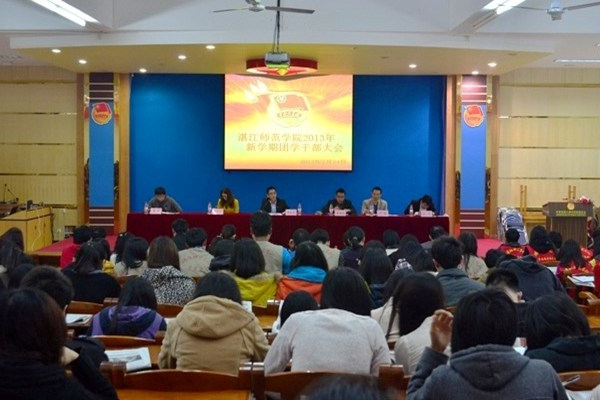 湛师新闻网2月25日讯 昨日下午,校团委在弘雷楼311室召开新学期团学干部大会。校团委全体领导老师、二级学院团委书记或负责人、四大学生机构全体学生干部以及二级学院主要学生干部参加了大会。